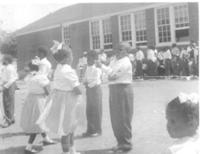 07003.ED – Pictured here is a May Day celebration at Eagle Avenue School in Charles Town. The children might have been dancing around the May Pole which was an event that children across the country participated in. This was probably taken at the second Eagle Avenue Elementary School because the first closed in 1929 and it appears that this photo was taken in the 1950’s. The school closed at the end of the school year in 1966. On September 24, 1966 the school was destroyed by fire.