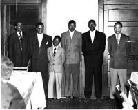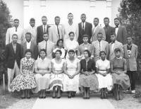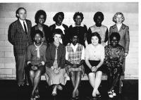07013.ED – In the fall of 1938 Mr. Steward and 30 pupils began the first “negro” high school in Jefferson County, Page-Jackson High School. In 1951 PHJS was relocated to Mordington Avenue in the building which today houses the Board of Education offices. Taken during the 1940’s, this photo shows the teachers at Page Jackson High School. Front row, left to right are: Elsie Clinton, Yvonne Snowden, Cerelle Craven, Mildred Epps, and Goldye Johnson. Back row, left to right are: Irma Hall, Anne Watkins, Principal O. M. Stewart, Odetta Berry, and E. M. Dandridge.