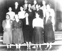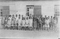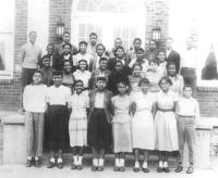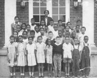 07014.ED – Mrs. Goldye Kent Johnson stands with the students at Eagle Avenue School. Mrs. Johnson was the class sponsor. This group of students would later be the Class of 1954 at Page Jackson High School. Mrs. Johnson was also a teacher at Grandview Elementary School which would replace the Eagle Avenue School. Grandview School would close after the 1965 school year.