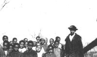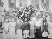 07017.ED – Students at the Myerstown Colored School with teacher Annie Watkins; taken around 1920; Jefferson County, WV; Annie left this school and eventually taught at Eagle Avenue Colored School. The first known school for Black students in Myerstown was built in 1875 on a lot purchased from Fisher A. Lewis. The building is no longer standing. Here Students at the Myerstown Colored School are pictured with teacher Annie Watkins. The photograph was taken around 1920 in Jefferson County, West Virginia. Annie Watkins left this school and later taught at Eagle Avenue Colored School in Charles Town. Eventually the school was sold to Charles Sim. The first known school for black student in Myerstown was built in 1875 on a lot purchased from Fisher A. Lewis. The building is no longer standing. Here students at the Myerstown Colored School are pictured with teacher Annie Watkins. The photo was taken around 1920 in Jefferson County, WV. Annie Watkins left this school and eventually taught at Eagle Avenue Colored School in Charles Town. Eventually the school was sold to Charles Sim.