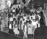 07023.ED – Students of Grand View Elementary School from Harpers Ferry, WV are pictured in this photo. They were on a field trip to Luray Caverns in VA in the 1950’s. They traveled by school bus. Grandview was one of the earliest black schools in the Harpers ferry District. Located in Bolivar on Ridge Street, it served black students for grades 1-8 and closed at the end of the 1965 school year. The last members of the faculty were: Principal Mr. Robert Nunn and 3 teachers Mr. Thomas Lee, Mrs. Ruby Reeler, Mrs. Betty Raylor and custodian Mr. Walter Fox.