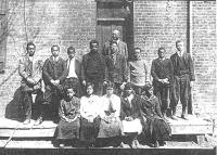 07008.ED – Students at Storer College, Harpers Ferry, WV; circa ?; [037] — This photo shows students at Storer College in Harpers Ferry, WV, in the early days. Storer College was founded as the first institution for educating freed slaves in the South. John Storer of Maine offered $10,000 as a donation to establish such a school if there was a matching donation from others, which was accomplished. Storer College began its noble task of educating Negroes with 19 students on October 2, 1867 with Rev. Brackett serving as principal. It was opened in the Lockwood House with that building serving as a dwelling house, school and church. It grew rapidly and only 2 years later, there were 96 students enrolled. It finally closed its doors in 1955.